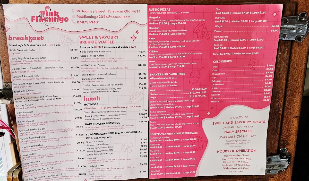 Pink Flamingo Yarraman is not just a cafe; it's a cherished spot to relax, enjoy great food, and chat with locals. Make it your next stop in Yarraman!